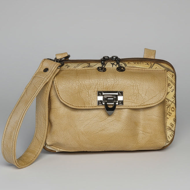 Stay organized on the go with this compact, multifunctional small bag. The front pocket securely holds your phone with a lock closure, while a zipper opens the built-in wallet, featuring card slots and a clear ID pocket for easy access. The back zipper pocket provides additional storage for cash, keys, or small essentials, and the wristlet strap makes it easy to carry hands-free. Perfect for errands, travel, or nights out, this bag combines style, security, and convenience in one.