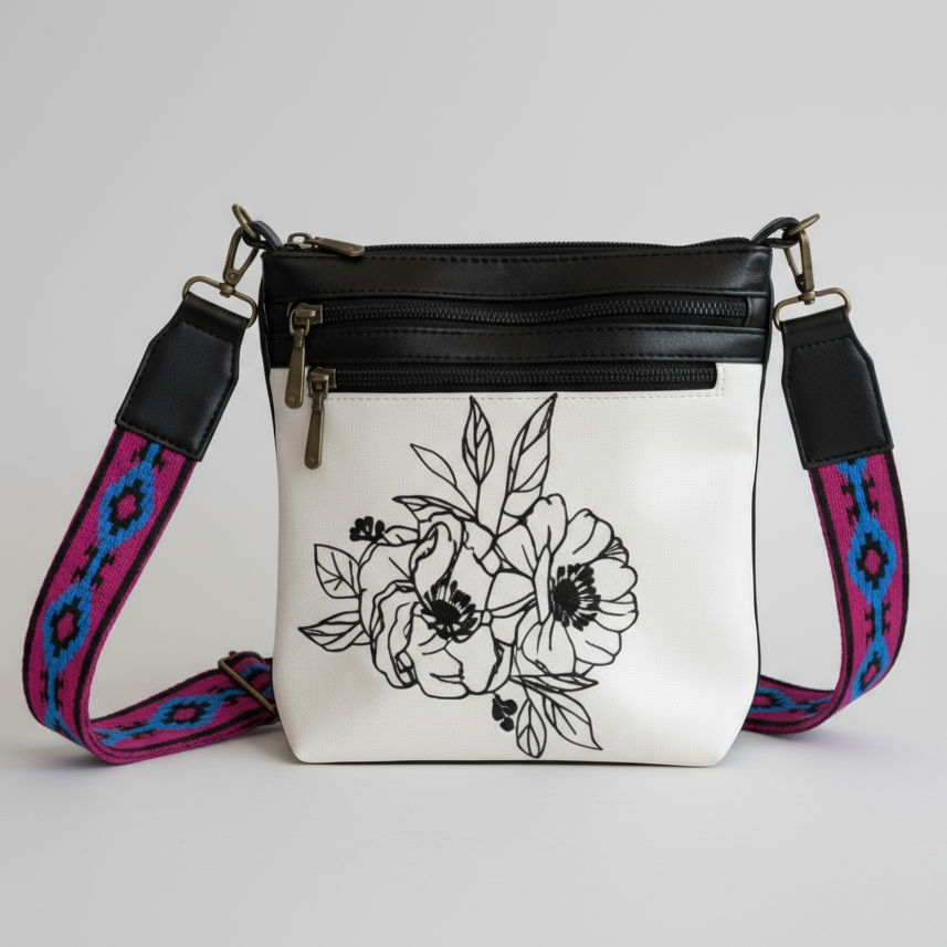 The bag’s oval-shaped bottom allows it to stand on its own, while the adjustable strap ensures a comfortable, hands-free fit. The front panel offers space for personalization, perfect for adding embroidery, patches, or a unique fabric print to make it your own.